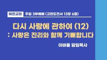 3부예배 / 이바울 담임목사 / 다시 사랑에 관하여 (12)