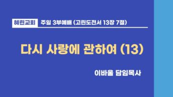 3부예배 / 이바울 담임목사 / 다시 사랑에 관하여 (13)