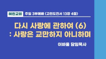 3부예배 / 이바울 담임목사 / 다시 사랑에 관하여 (6)
