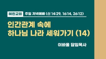 저녁예배 / 이바울 담임목사 / 인간관계 속에 하나님 나라 세워가기 (14)