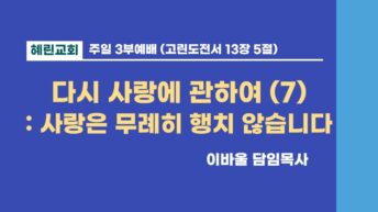 3부예배 / 이바울 담임목사 / 다시 사랑에 관하여 (7)