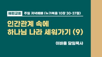 저녁예배 / 이바울 담임목사 / 인간관계 속에 하나님 나라 세워가기 (9)