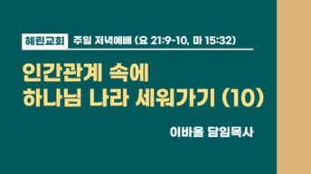 저녁예배 / 이바울 담임목사 / 인간관계 속에 하나님 나라 세워가기 (10)