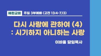 3부예배 / 이바울 담임목사 / 다시 사랑에 관하여 (4)