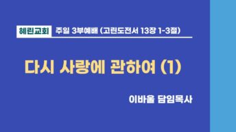 3부예배 / 이바울 담임목사 / 다시 사랑에 관하여 (1)