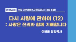 Previous 혜린교회 혜린TEENS 찬양단 [24.11.17] Next 혜린교회 혜린TEENS 찬양단 [24.10.20] 혜린TEENS 혜린교회 혜린TEENS 찬양단 [24.11.10] 2024년 11월 11일 Watch LaterRemove Cinema Mode FacebookXEmail 리더 : 임하은 학생 혜린TEENS You may also like Video 혜린TEENS 혜린교회 혜린TEENS 찬양단 [25.12.14] 2주 ago Video 혜린TEENS 혜린교회 혜린TEENS 찬양단 [25.12.05] 3주 ago Video 혜린TEENS 혜린교회 혜린TEENS 찬양단 [25.11.30] 4주 ago Add comment 댓글을 달기 위해서는 로그인해야합니다. Latest videos 금요철야 / 이바울 담임목사 / 치유하시는 하나님 (64) 6일 ago 저녁예배 / 이바울 담임목사 / 예수님의 사람 (13) 6일 ago 3부예배 / 이바울 담임목사 / 다시 사랑에 관하여 (12) 6일 ago