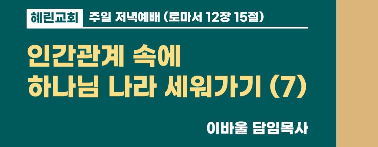 혜린교회 / 2025.05.11 / 주일 저녁 / 롬 12:15 / 인간관계 속에 하나님 나라 세워가기 (7) / 이바울 목사