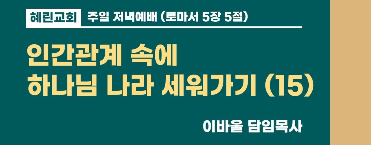 혜린교회 / 2025.08.17 / 주일 저녁/ 롬 5:5 /인간 관계 속에서 하나님 나라 세워가기 (15) / 이바울목사