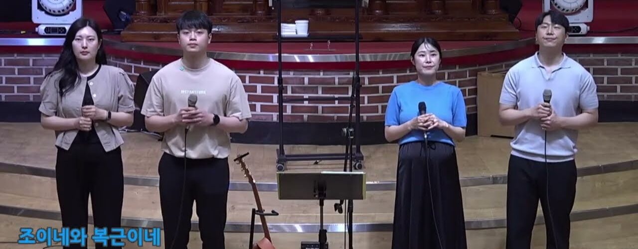 Previous 혜린교회 조승현, 박예은 부부 특송 [이제 역전되리라] Next 혜린교회 유하은, 문찬송, 강믿음 학생 특송 [너는 꽃이야] 특송 혜린교회 김태웅 신혼청년 가정, 권만재 신혼청년 가정 특송 [주의 가정] 6개월 ago Watch LaterRemove Cinema Mode FacebookXEmail 특송 You may also like Video 특송 혜린교회 중고등부 박남숙선생님 반 특송 [은혜] 1주 ago Video 특송 혜린교회 박소민 자매 특송 [한나의 노래] 2주 ago Video 특송 혜린교회 황진유, 이시아 학생 CCD [오직 주] 2주 ago Latest videos 혜린교회 Eze37:5 찬양단 [24.12.05] 1주 ago 혜린교회 중고등부 박남숙선생님 반 특송 [은혜] 1주 ago 혜린교회 혜린TEENS 찬양단 [25.12.05] 1주 ago