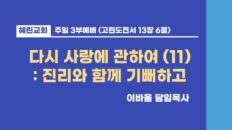Previous 3부예배 / 이바울 담임목사 / 재사랑 (3) Next 3부예배 / 이바울 담임목사 / 재사랑(8) 주일예배설교 3부예배 / 이바울 담임목사 / 재사랑 (7) 2024년 10월 14일 Watch LaterRemove Cinema Mode FacebookXEmail 혜린교회 / 2024.08.04 / 주일 3부 / 마 26:24; 눅 2:35 / 재사랑(7) / 이바울 목사 주일예배설교 You may also like Video 주일예배설교 3부예배 / 이바울 담임목사 / 다시 사랑에 관하여 (11) 6일 ago Video 주일예배설교 3부예배 / 이바울 담임목사 / 다시 사랑에 관하여 (10) 2주 ago Video 주일예배설교 3부예배 / 이바울 담임목사 / 그리스도 중심적 감사 1개월 ago Add comment 댓글을 달기 위해서는 로그인해야합니다. Latest videos 저녁예배 / 이바울 담임목사 / 예수님의 사람 (12) 6일 ago 혜린교회 Eze37:5 찬양단 [24.12.14] 6일 ago 혜린교회 중고등부 교사 특송 [천사 찬송하기를] 6일 ago