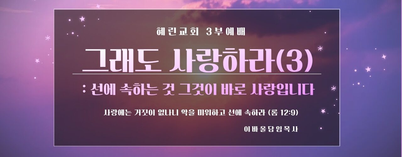 Next 3부예배 / 이바울 담임목사 / 그래도 사랑하라 (2) 주일예배설교 3부예배 / 이바울 담임목사 / 그래도 사랑하라 (3) 1주 ago Watch LaterRemove Cinema Mode FacebookXEmail 주일예배설교 You may also like Video 주일예배설교 3부예배 / 이바울 담임목사 / 그래도 사랑하라 (2) 2주 ago Video 주일예배설교 3부예배 / 이바울 담임목사 / 그래도 사랑하라 (1) 2주 ago Video 주일예배설교 3부예배 / 이바울 담임목사 / 다시 사랑에 관하여 (16) 2개월 ago Latest videos 혜린교회 이강민 학생 특송 [선교사] 5일 ago Faith Archive Ep.53 – 정미순 권사 (Hyerin Church) 7일 ago 혜린교회 Eze37:5 찬양단 [26.03.01] 1주 ago