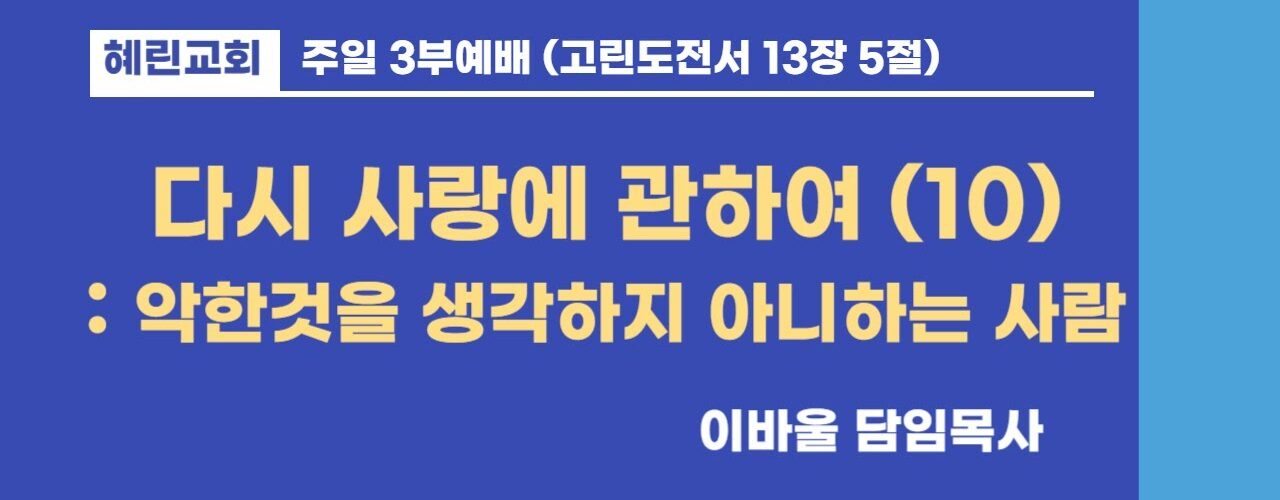 혜린교회 / 2025.12.07 / 주일 3부 / 고전 13:5 / 다시 사랑에 관하여(10) / 이바울 목사