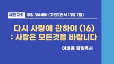 3부예배 / 이바울 담임목사 / 다시 사랑에 관하여 (16)