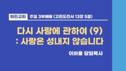 3부예배 / 이바울 담임목사 / 다시 사랑에 관하여 (9)