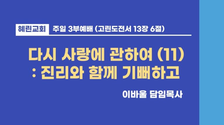 3부예배 / 이바울 담임목사 / 다시 사랑에 관하여 (11)