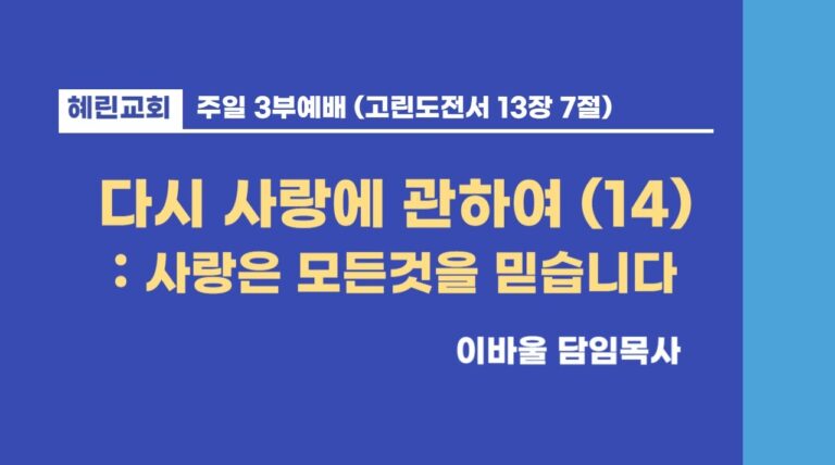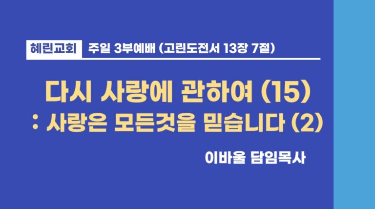 3부예배 / 이바울 담임목사 / 사랑은 모든것을 믿습니다