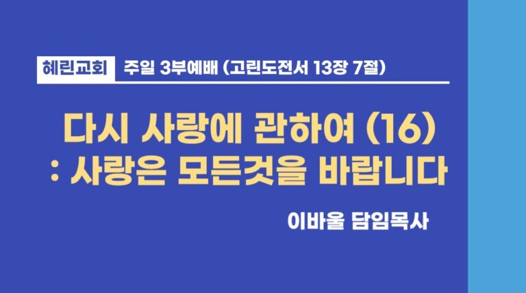 3부예배 / 이바울 담임목사 / 다시 사랑에 관하여 (16)