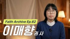 Previous Faith Archive Ep.62 – 이매향 권사 (Hyerin Church) Next Faith Archive Ep.60 – 윤옥분 권사 (Hyerin Church) Faith Archive Faith Archive Ep.61 – 김정순 권사 (Hyerin Church) 5일 ago Watch LaterRemove Cinema Mode FacebookXEmail 하나님께서 우리를 만나주신 놀라운 은혜를 기억하며, 감사의 마음으로 이 간증을 나눕니다. 『Faith Archive』는 간증을 통해 복음을 전하고(사도행전 22:1-21), 다음 세대에게 믿음의 본을 전수하는 사역입니다 (히브리서 13:7, 야고보서 5:11). 이 이야기가 누군가에게 하나님의 사랑을 전하는 도구가 되기를 소망합니다. 혜린교회 (경기 부천시 원미구 계남로 326 / 032-668-4072) Faith Archive You may also like Video Faith Archive Faith Archive Ep.62 – 이매향 권사 (Hyerin Church) 4일 ago Video Faith Archive Faith Archive Ep.60 – 윤옥분 권사 (Hyerin Church) 6일 ago Video Faith Archive Faith Archive Ep.59 – 윤애란 권사 (Hyerin Church) 1주 ago Latest videos Faith Archive Ep.62 – 이매향 권사 (Hyerin Church) 4일 ago 혜린교회 3교구 특송 [난 예수가 좋다오] 5일 ago 혜린교회 Eze37:5 찬양단 [26.04.12] 5일 ago