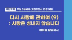 3부예배 / 이바울 담임목사 / 다시 사랑에 관하여 (9)