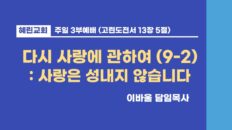 3부예배 / 이바울 담임목사 / 다시 사랑에 관하여 (9-2)