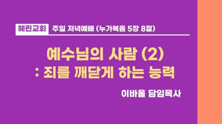저녁예배 / 이바울 담임목사 / 인간관계 속에 하나님 나라 세워가기 (8)