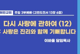 3부예배 / 이바울 담임목사 / 다시 사랑에 관하여 (12)