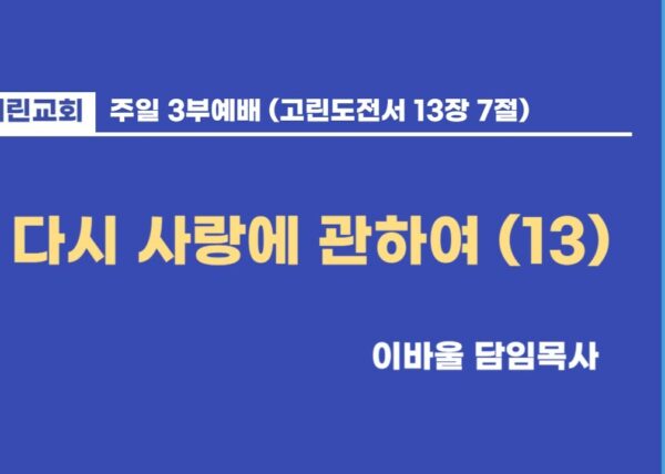 3부예배 / 이바울 담임목사 / 다시 사랑에 관하여 (13)